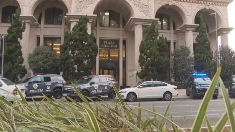 Carro de polícia durante operação contra o PCC na Faria Lima