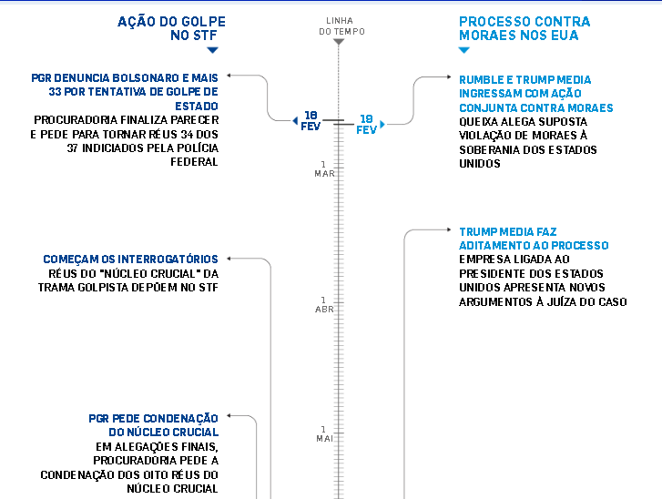 As petições do processo na Justiça dos Estados Unidos contra o ministro Alexandre de Moraes, do Supremo Tribunal Federal (STF), ocorrem em datas coincidentes a andamentos da ação penal por tentativa de golpe de Estado, relatada pelo magistrado.