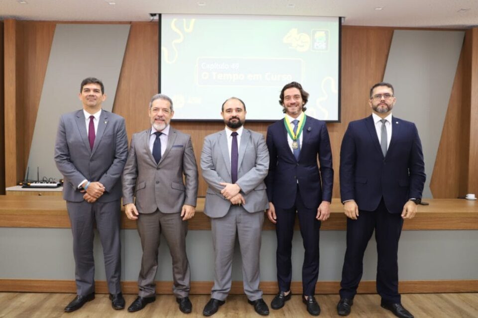 Representando também a procuradora-geral do Estado, o procurador-geral adjunto, Lucas Grangeiro, ressaltou o caráter contínuo e dinâmico da instituição. “Os 49 anos celebram o percurso de quem construiu pedra por pedra ao longo de quase cinco décadas. Uma procuradoria que existe que resiste e que ainda tem muito a dizer. A cápsula do tempo que lacramos hoje é o ciclo perfeito dessa consciência. Guardamos o presente não porque ele é definitivo, mas porque sabemos que o futuro olhará para ele e aprenderá. Escrevemos cartas para o ano que vem porque acreditamos que haverá um ano que vem e isso por si só já é um ato da fé institucional”.