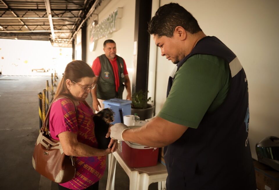 Além do trabalho nos supermercados, a equipe do Centro de Zoonoses realiza ações de busca ativa nos finais de semana. No próximo sábado (23), será a vez do bairro Mocinha Magalhães receber a vacinação.
