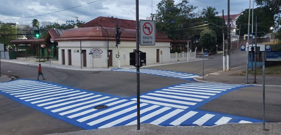 Na última quinta-feira (8), a equipe de sinalização da RBTrans executou a pintura de duas faixas de pedestres, com oito metros de comprimento cada, no cruzamento da Avenida Ceará com a Rua Omar Sabino, na região da Estação.