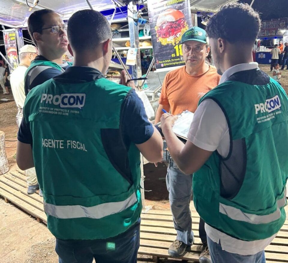 Agentes fiscais do Procon fiscalizam os empreendimentos comerciais da Expoquinari. Foto: Lorrana Silva/Procon