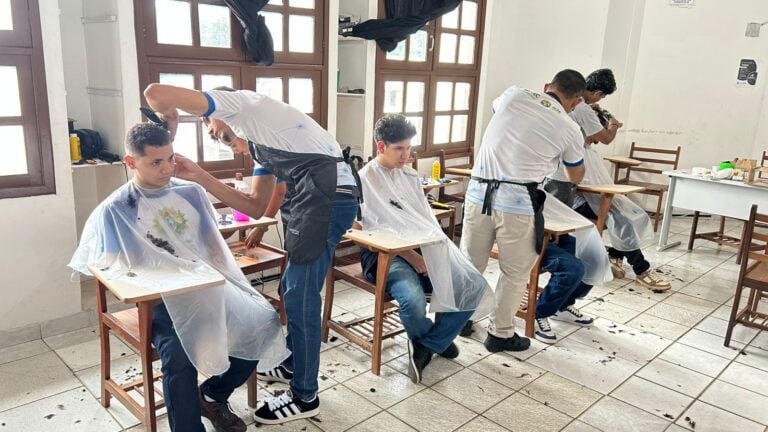 “Está sendo maravilhoso. Temos aqui a oportunidade de aprender cada vez mais, que estamos agarrando com todas as forças. Temos nossas dificuldades, mas estamos aqui tentando. Meu esposo já corta bem mais, nessa parte de barbearia ele já é bem avançado; eu estou dando os primeiros passos. O corte feminino, já corto um pouco. E sou manicure profissional. No futuro, a gente pretende abrir o nosso próprio negócio, trabalhar no ramo e só aperfeiçoar cada vez mais”, relatou Elizete.