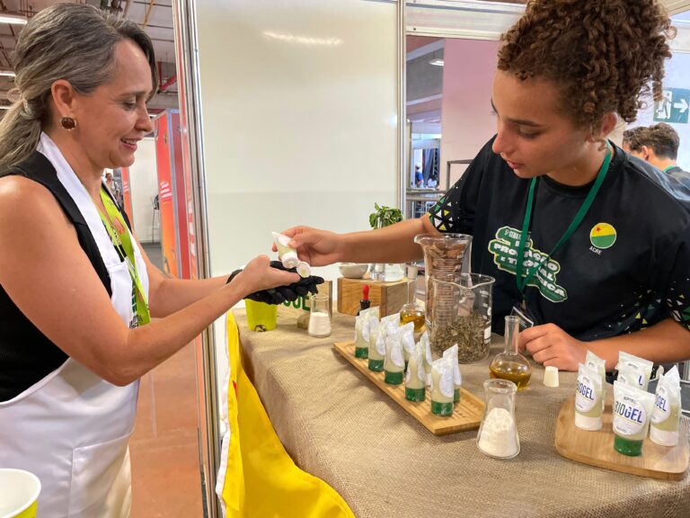 Um dos projetos é o Biogel Fitoterapêutico, desenvolvido por estudantes da Escola Técnica em Saúde Maria Moreira da Rocha. Indicado para a cicatrização de feridas e lesões cutâneas com uso de princípios de plantas como copaíba e jambu. O produto chamou a atenção de visitantes como a expositora de queijos Alessandra Vital, que experimentou o gel num pequeno corte na mão feito com a faca de cortar queijo. “Não sinto mais incômodo nem com o uso da luva”, afirmou.