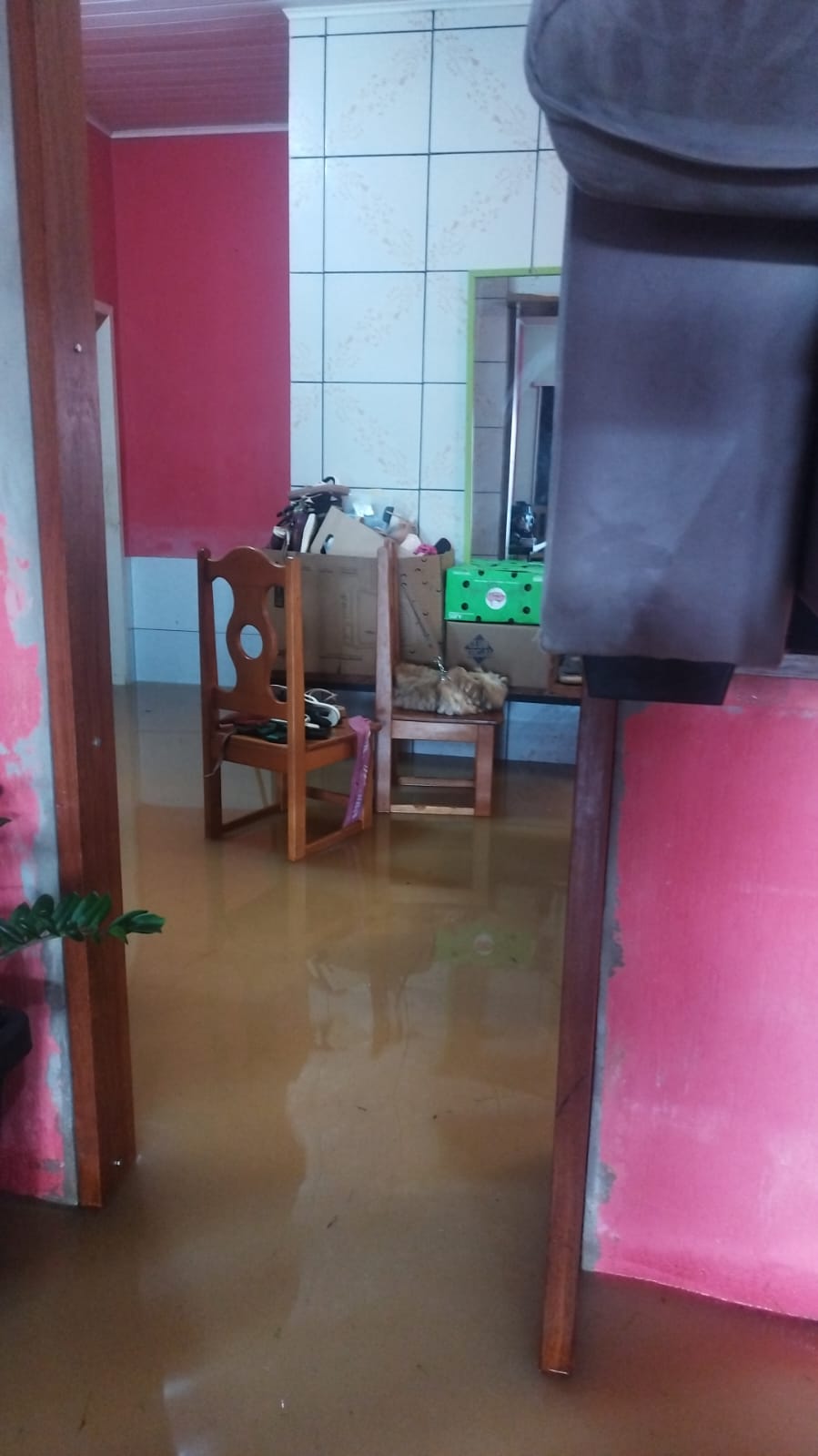 Moradores prestam pedido de ajuda na limpeza das ruas. As enchentes vêm ocorrendo com frequência na região devido às fortes chuvas que ocorrem.