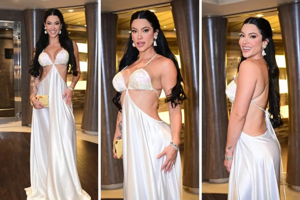 E o Cruzeiro de Belo está a todo vapor. Na noite de sábado, 13 de dezembro, a atual namorada do pagodeiro, Rayane Figliuzzi apostou em um look sexy para a festa do branco, que contou com show do famoso.