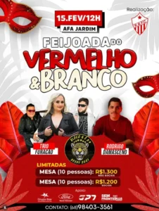 O tradicional Baile Vermelho e Branco, promovido pelo Rio Branco Football Club, será realizado no dia 15 de fevereiro, no AFA Jardim, a partir das 12h.
