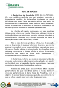 A Santa Casa reforça que a disseminação de tais alegações compromete a confiança pública e o debate democrático, atingindo uma instituição que afirma atuar de forma transparente e comprometida com o interesse coletivo.