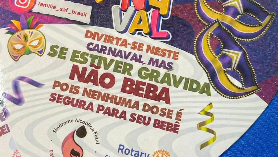 Em meio à programação carnavalesca, profissionais de saúde abordaram o público para um diálogo direto e esclarecedor sobre os riscos do consumo de bebida alcoólica durante a gestação. A SAF é a forma mais grave dos Transtornos do Espectro Alcoólico Fetal (TEAF) e provoca alterações físicas, neurológicas e comportamentais irreversíveis, causadas pela exposição do feto ao álcool. O alerta foi claro: a síndrome é totalmente evitável e, durante a gravidez, não existe dose segura de álcool.