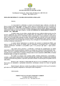 A decisão foi tornada pública nesta terça-feira (24), durante reunião da comissão de Saúde na Assembleia Legislativa do Acre (Aleac). O despacho é assinado pelo secretário de Saúde, Pedro Pascoal, com data de 19 de fevereiro, e foi lido pelo secretário de Governo, Luiz Calixto.