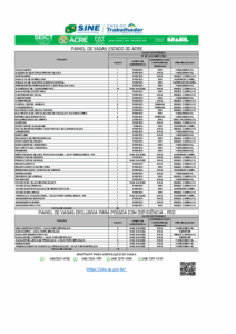 O Sistema Nacional de Emprego (Sine) no Acre anunciou nesta terça-feira, 7 de outubro, a abertura de 62 vagas de trabalho em Rio Branco. As oportunidades contemplam diferentes níveis de escolaridade, desde o ensino fundamental até o superior, atendendo a diversos perfis profissionais.