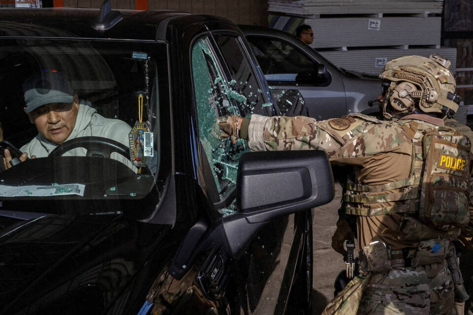 Agente quebra janela de carro para prender homem durante batida de imigração em Chicago, nos EUA – Jim Vondruska – 17.dez.25/Reuters