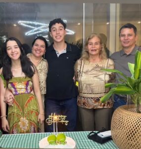 Na foto, o aniversariante com os pais Mariane e Siberman, a irmã Ana Flávia e a avó Marilva!
