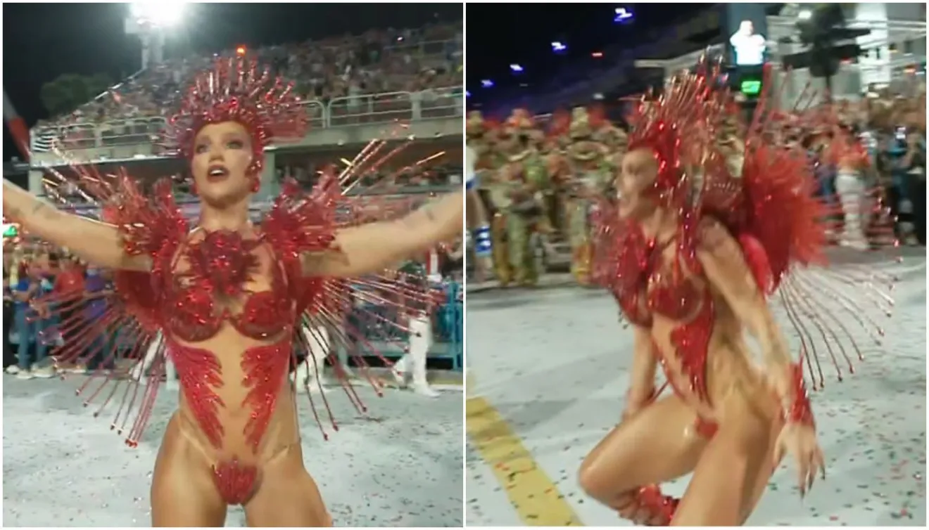 Na passarela do samba, a majestade enfrentou alguns problemas com sua fantasia. O costeiro volumoso, com cerca de 12 kg, precisou ser removido no meio da apresentação algumas vezes, após a empresária reclamar de dores. Além disso, o tapa-sexo chegou a descolar parcialmente ao longo da avenida – sem deixar a genitália à mostra.
