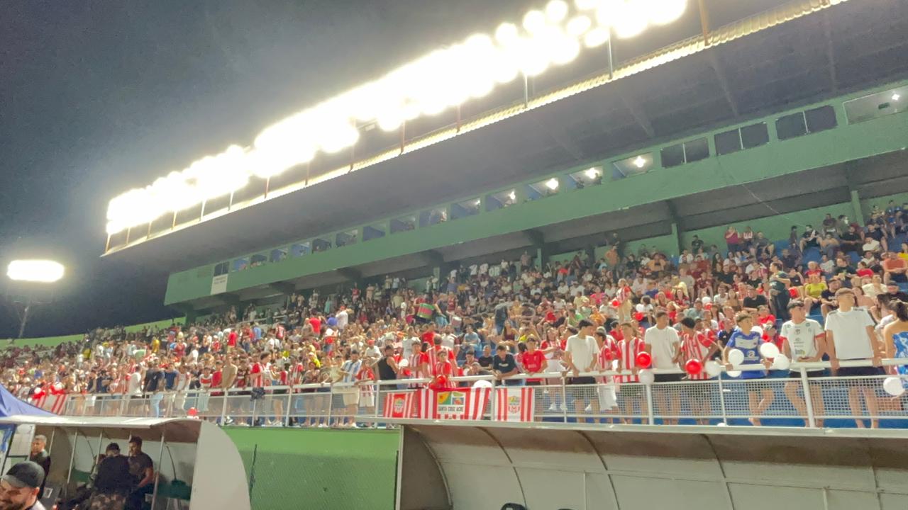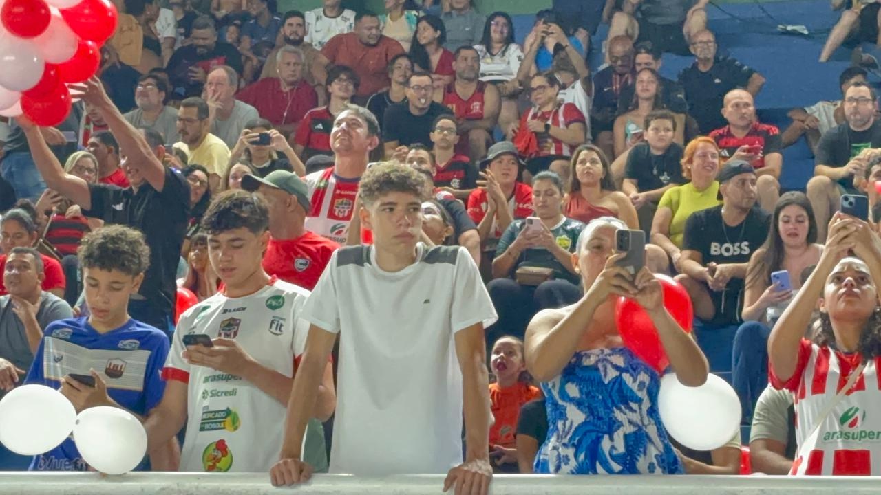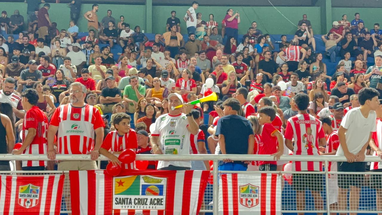 Com as arquibancadas coloridas de vermelho, branco e as cores do Santa Cruz, o clima é de uma verdadeira festa do futebol amazônico.