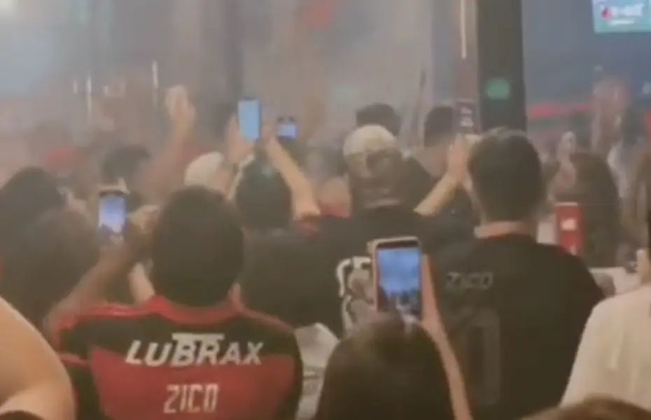 Outros registros mostram torcedores ainda dentro do ônibus da caravana que viajou ao Peru, celebrando o título. Em outro trecho publicado nos stories, o jogador Samuel Lino aparece balançando um bandeirão da Raça, uma das torcidas organizadas do Flamengo, enquanto toca Smooth Operator, da banda britânica Sade — música cujo refrão, pela sonoridade em português, lembra a expressão “chupa Palmeiras”, reforçando o clima de provocação.