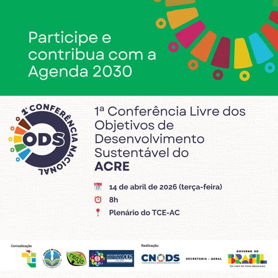 O Tribunal de Contas do Estado do Acre (TCE-AC) realiza, nesta terça-feira (14), a Conferência Livre dos Objetivos de Desenvolvimento Sustentável (ODS) – Acre. O evento faz parte da mobilização nacional para a Agenda 2030 e busca reunir gestores públicos, representantes da sociedade civil e cidadãos para debater soluções sustentáveis e inclusivas para o estado.
