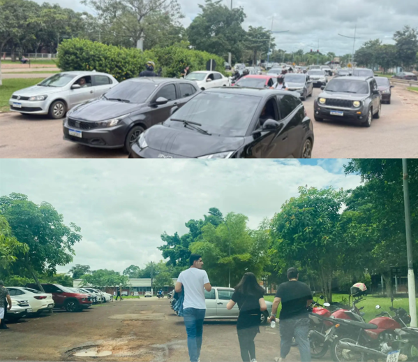 Antes mesmo da abertura dos portões, prevista para as 11h30, o fluxo intenso de veículos travou a rotatória em frente à Ufac. Motoristas que trafegavam nos sentidos centro–bairro e bairro–centro ficaram retidos em um extenso engarrafamento provocado por veículos que fecharem o cruzamento.