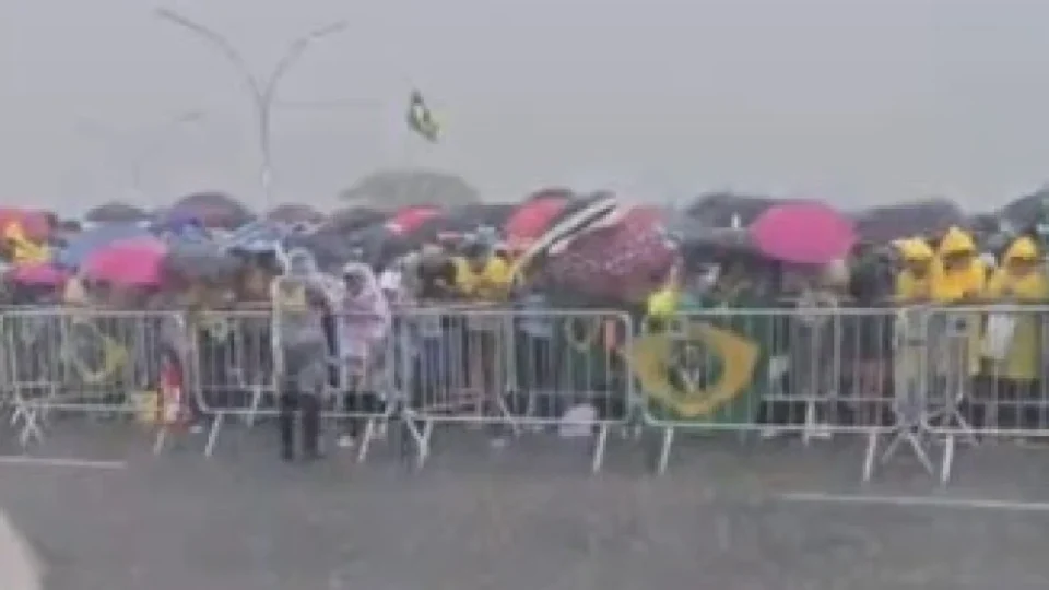 As imagens mostram manifestantes com capas e guarda-chuvas durante o temporal que atingiu a capital federal. Enquanto aguardavam a chegada do parlamentar, a descarga elétrica atingiu a área. Nas imagens, também é possível ver um manifestante caído no chão, atrás do gradil, logo após a queda do raio.